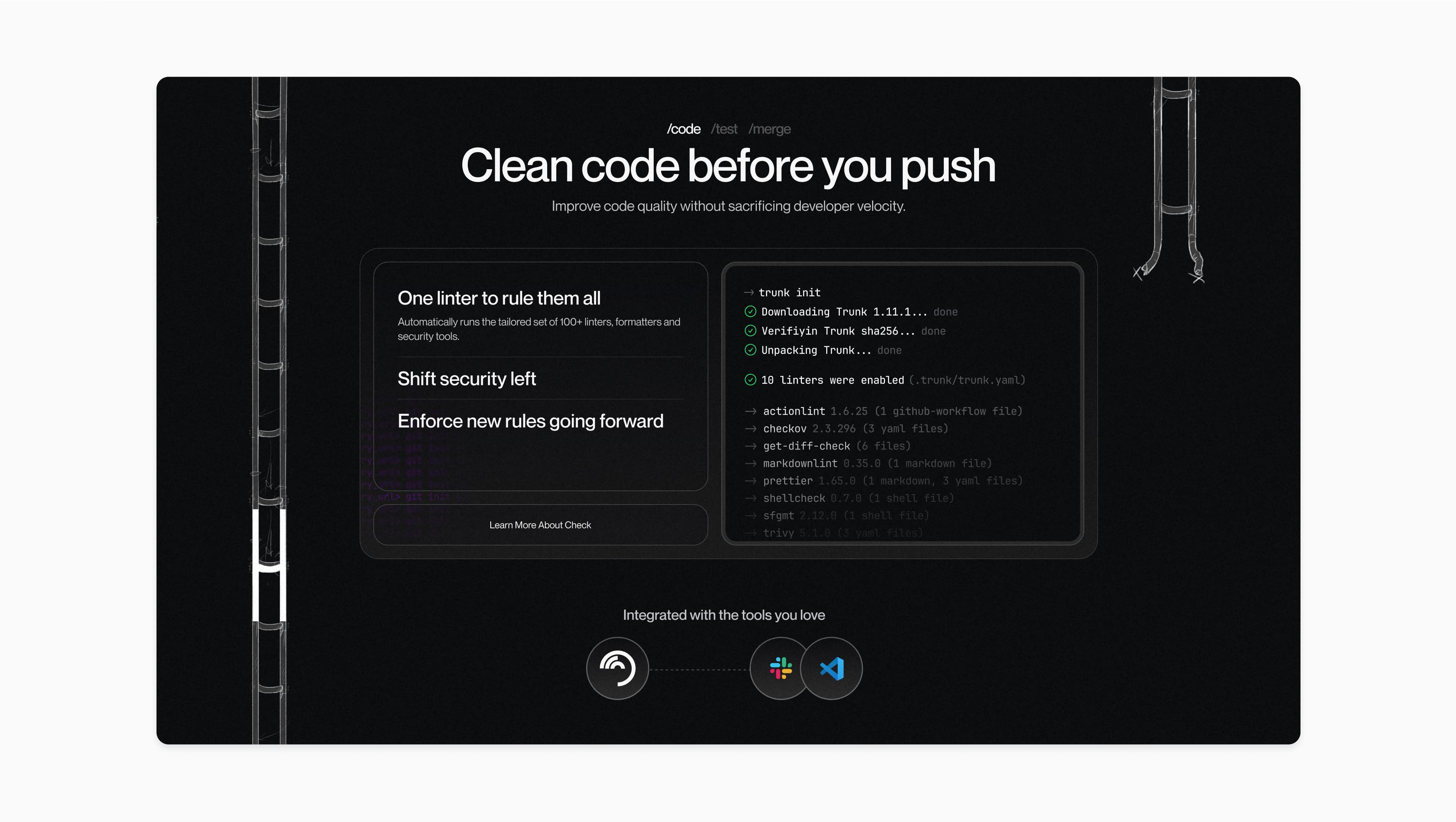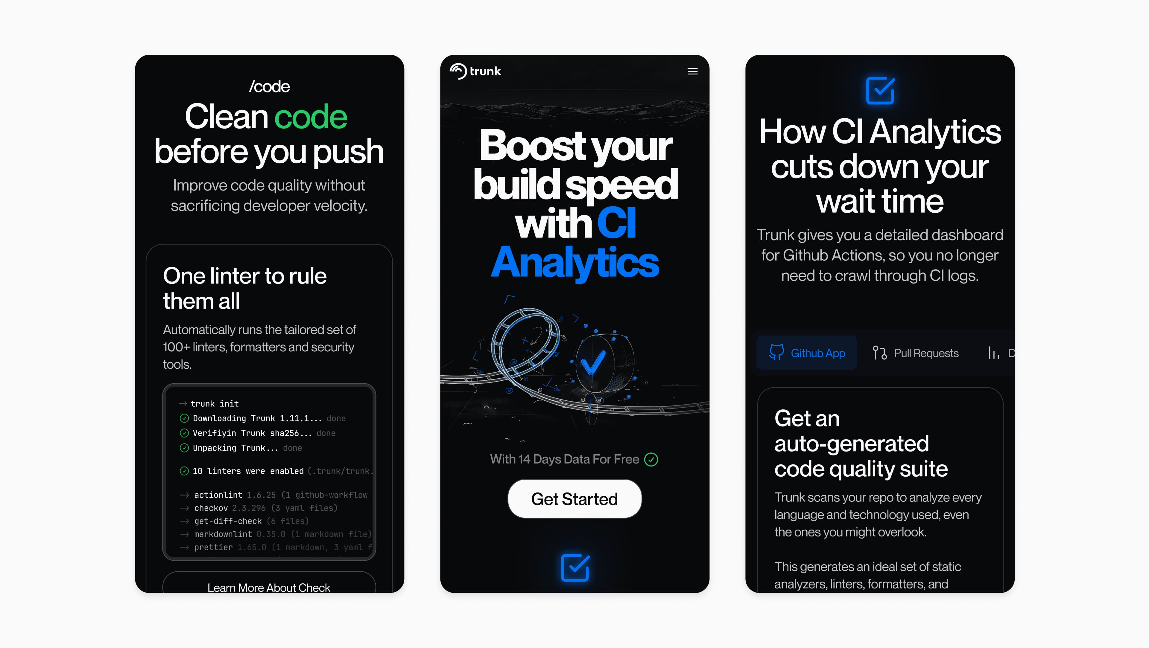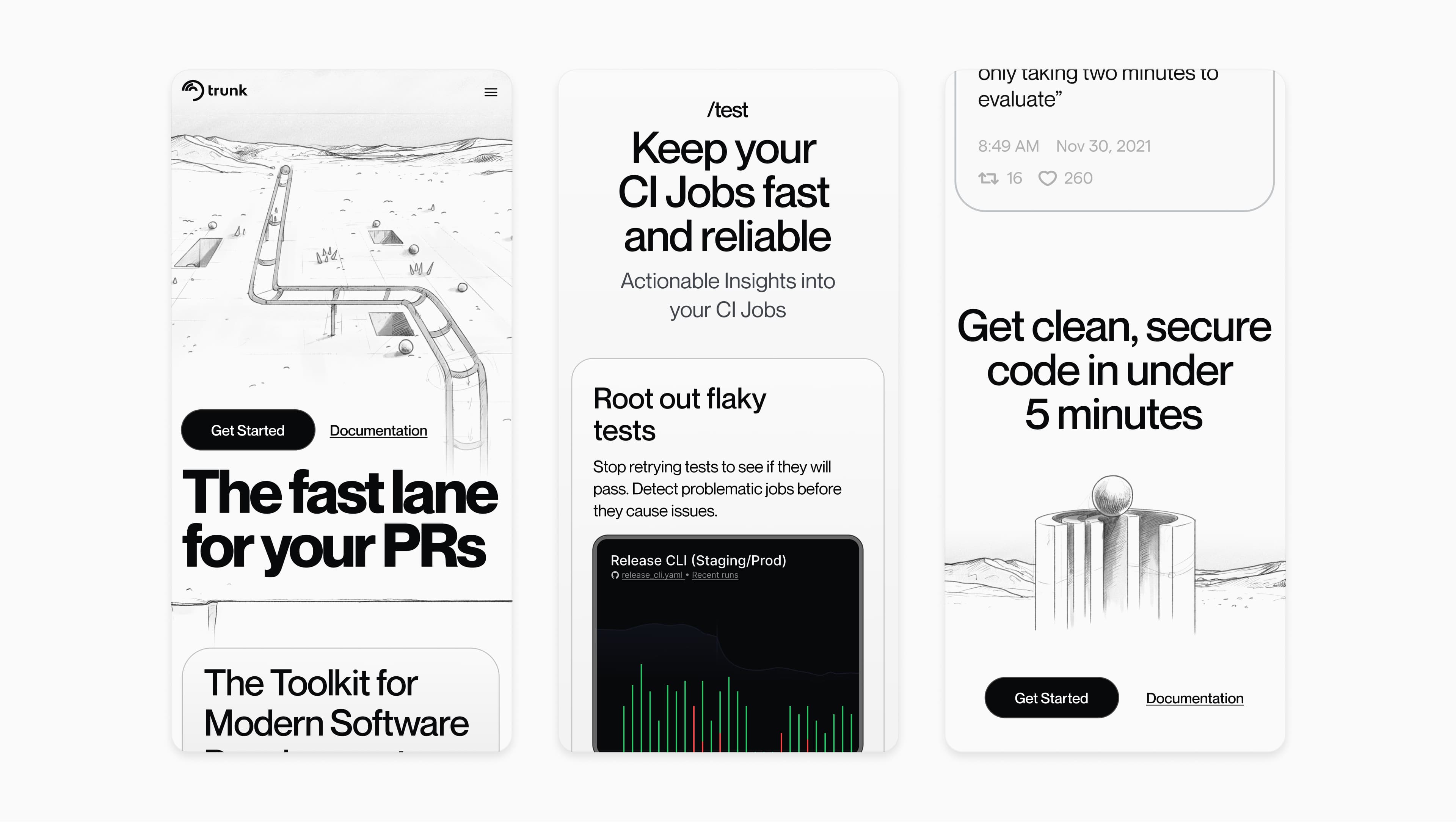 Trunk came to us with a bold vision: streamlining the developer workflow with a toolkit that does the heavy lifting, and we wanted their story to hit just as hard as their product. We built a site that moves—literally—guiding users through a scrollytelling experience powered by a rolling marble, blending nostalgia with cutting-edge tech.